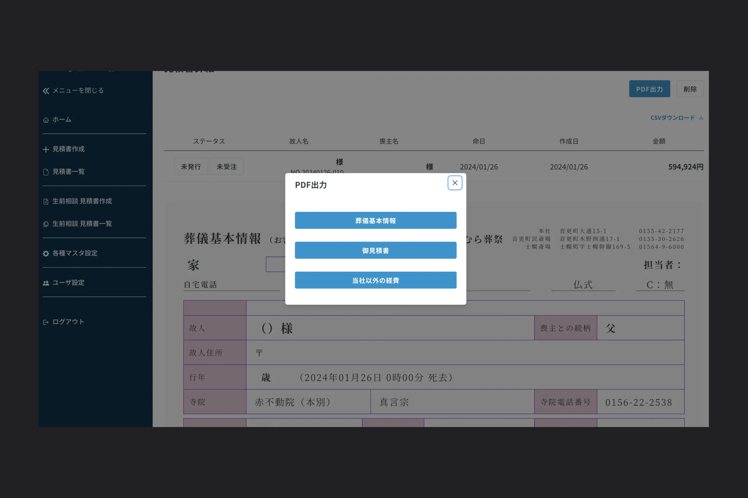 - その他:PDF出力、CSV出力で美しい帳票を出力