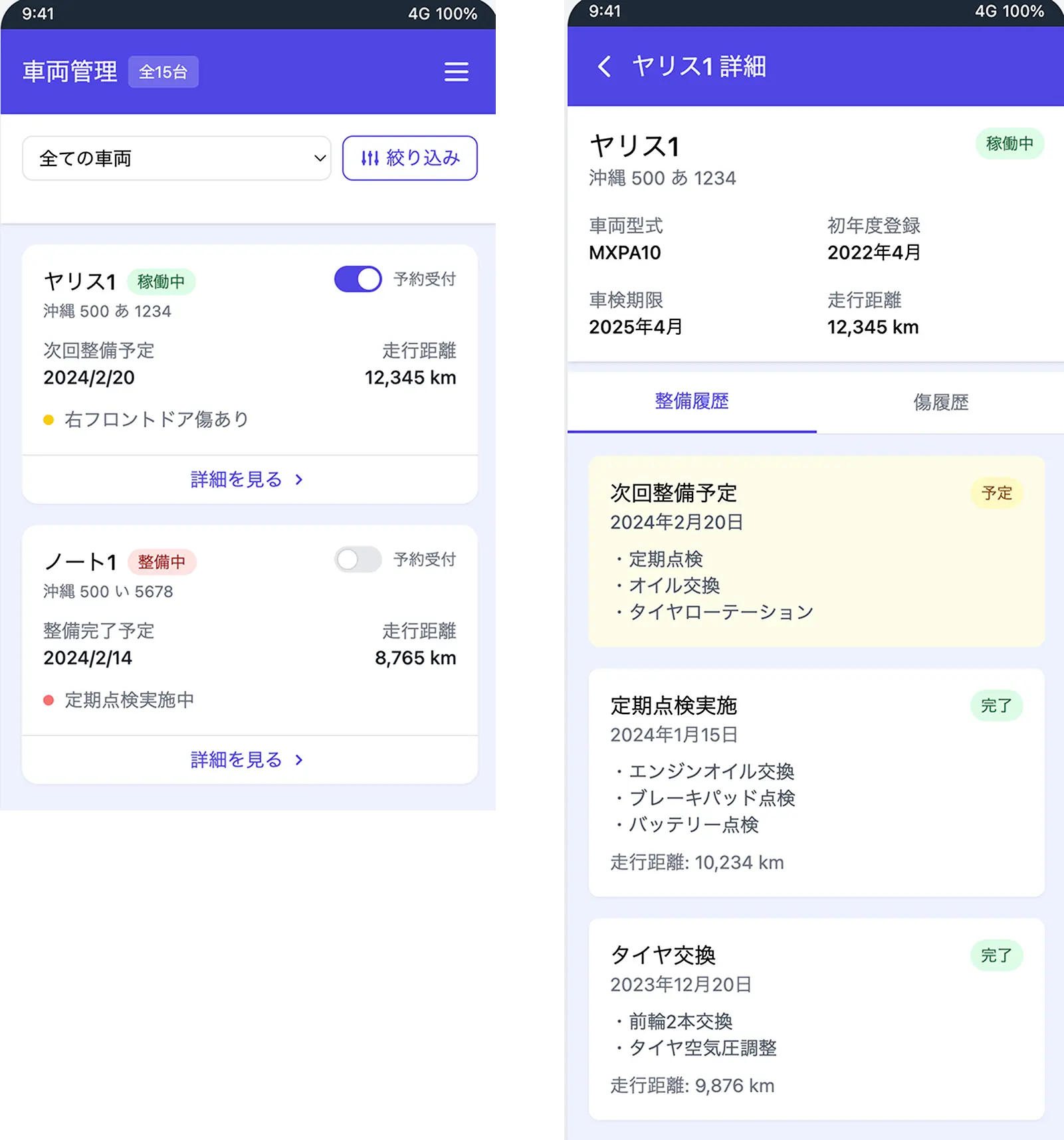 - 予約・貸出状況、車両の一元管理