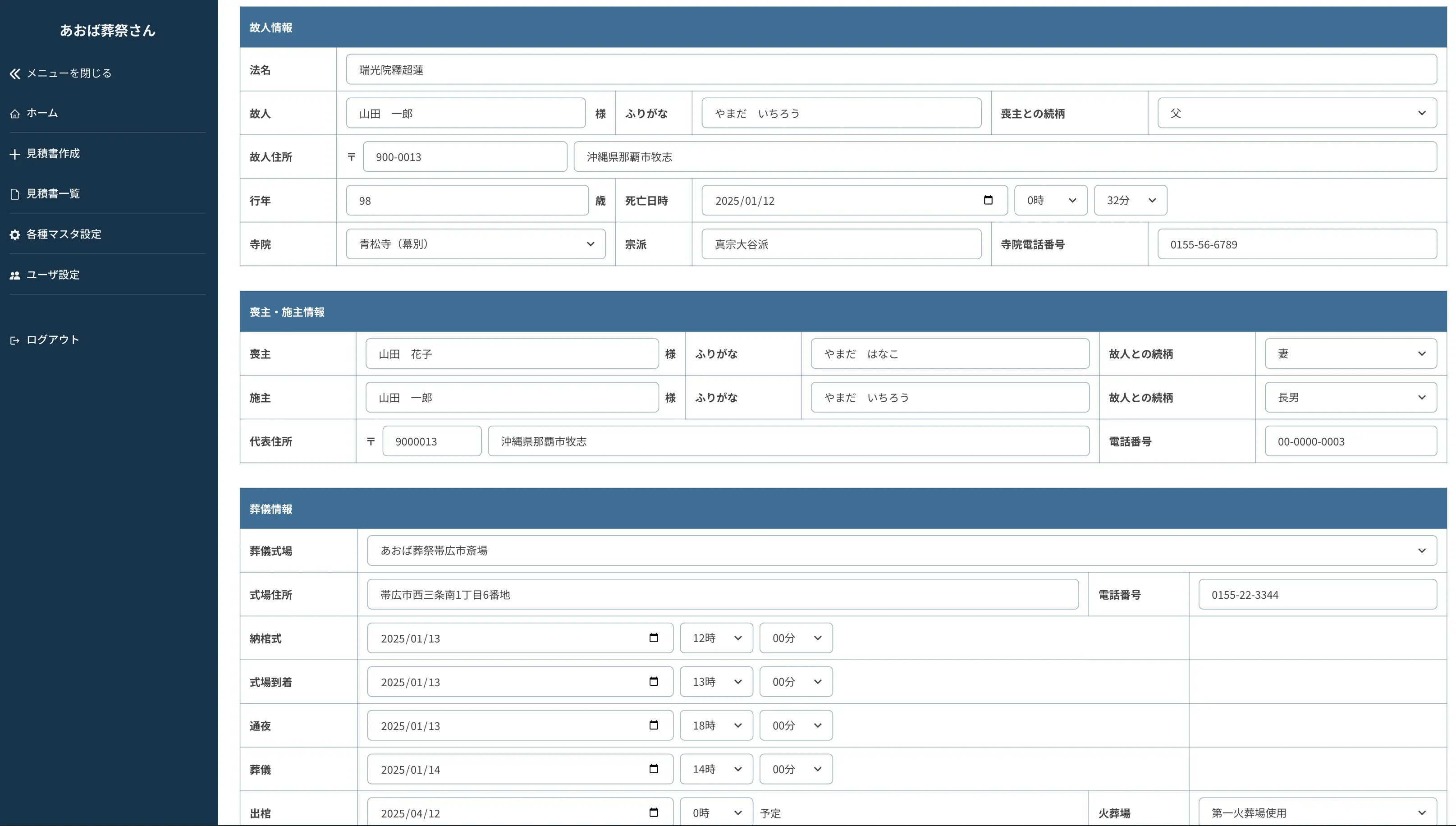 - 顧客情報や葬儀情報を統合管理